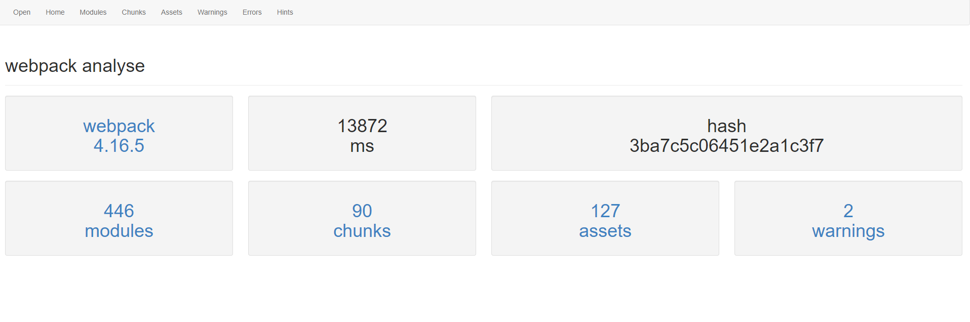 webpack提供的一个官方工具,可查看你的项目版本信息,有多少modules,多少chunks,中间有多少错误信息、有多少警告,各个模块之间的依赖关系等。