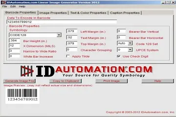 IDAutomation条形码图像生成器即是生成条形码图像的应用程序, 用户界面或命令行能够一次生成一个或多个条形码, 它支持JPEG, EPS,TIFF,PNG,BMP,WMF和每像素1位单色位图图像格式,可以修改条形码数据,类型,高度,颜色,边距和宽度。