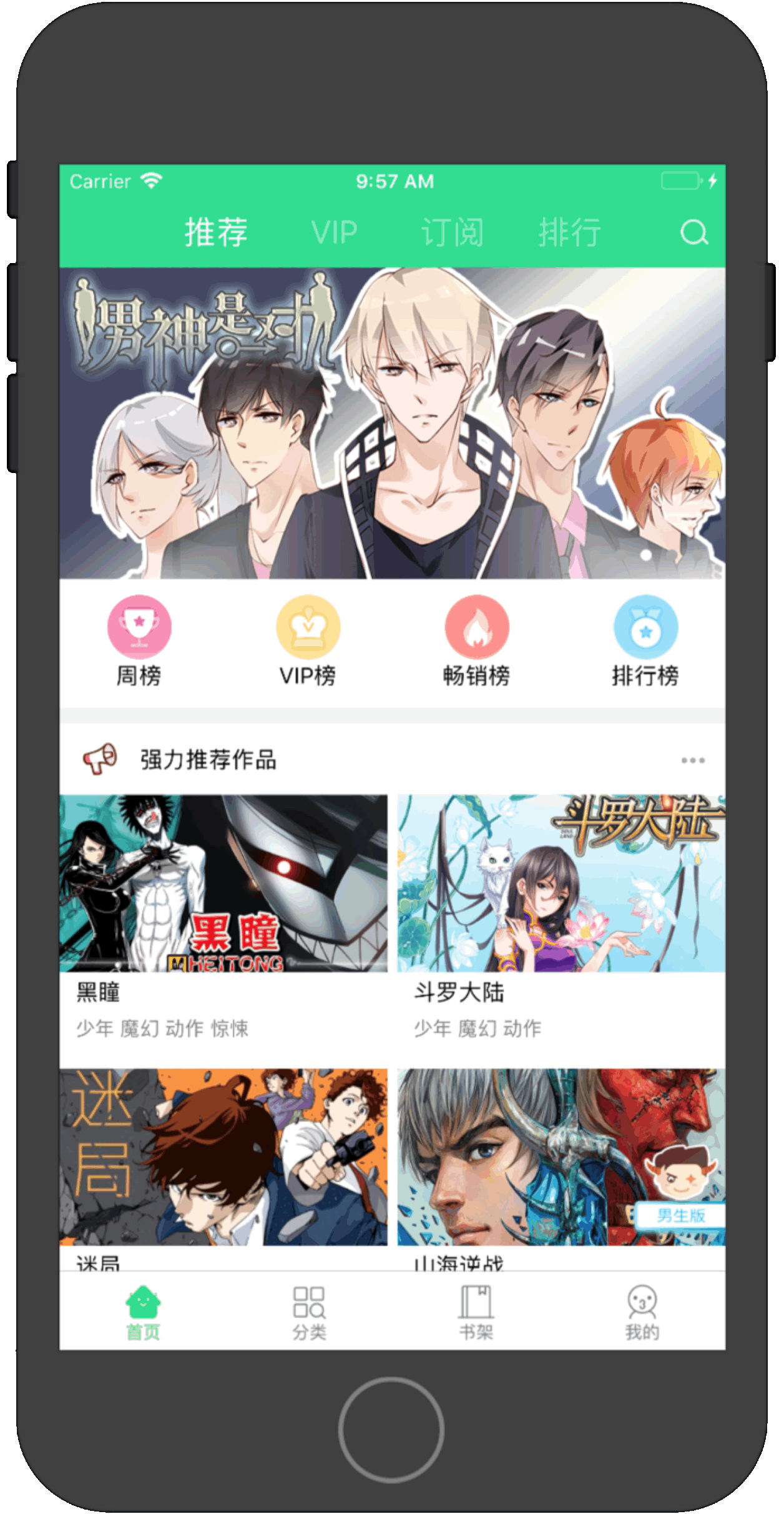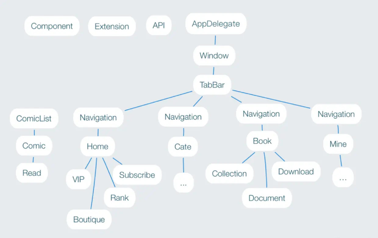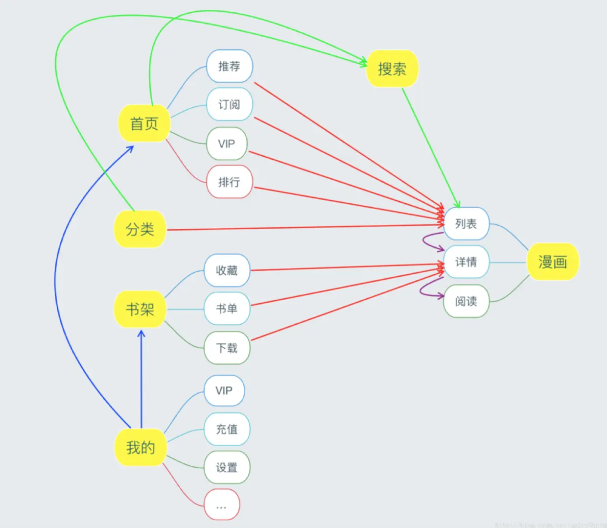 但是经过考虑 你肯定会想到,这是一个漫画类应用,那么肯定就会有一个通用的漫画列表和漫画详情乃至最后的漫画阅读应该作为一个漫画模块