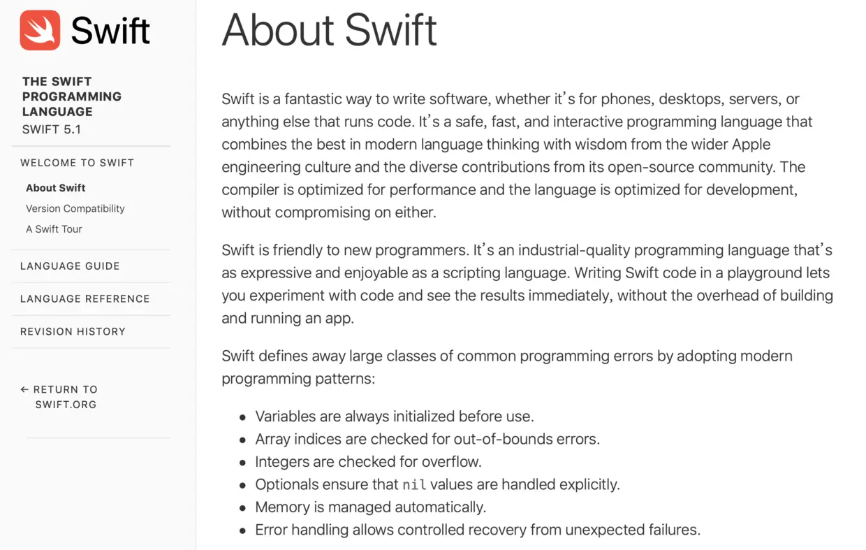 其实任何的学习官方的文档是最新的,也是最权威的!按照常理应该首推,但是我不认为每一个同学的学习能力以及英文阅读能力能够跟上。所以降为线路二。还有另外一个理由:当你看完[菜鸟教程:Swift基础],你再来看官方文档会更有感觉!