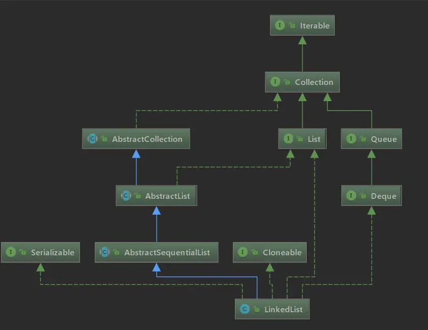我们来看一下LinkedList的继承结构图: