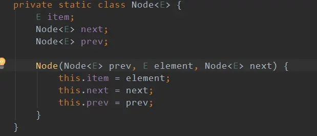 final Node<E> newNode = new Node<>(l, e, null);