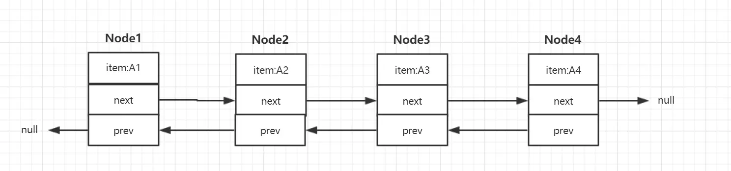 其实LinkedList 集合就是由许多个 Node 对象y一个连着一个组成手构成,可以看下方的图