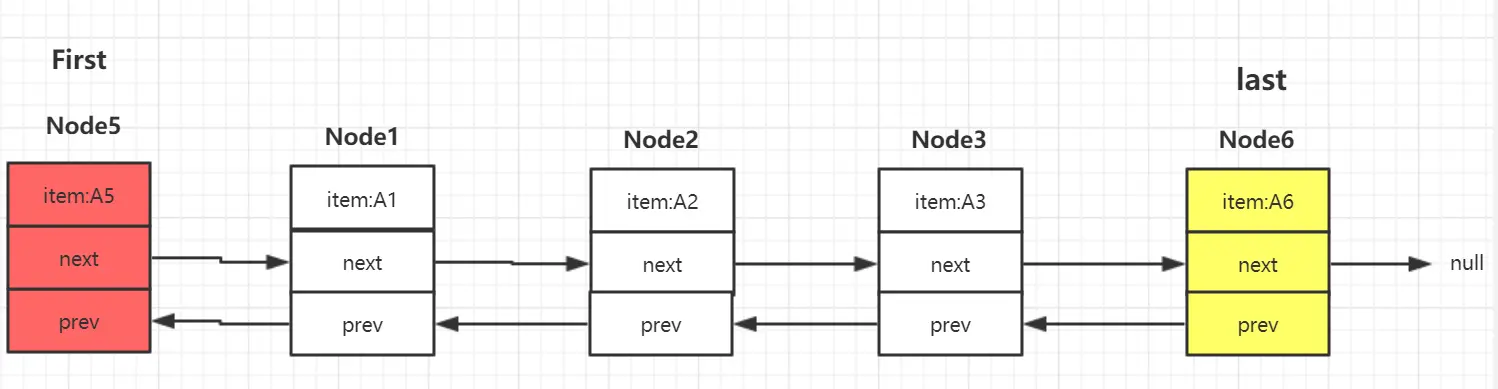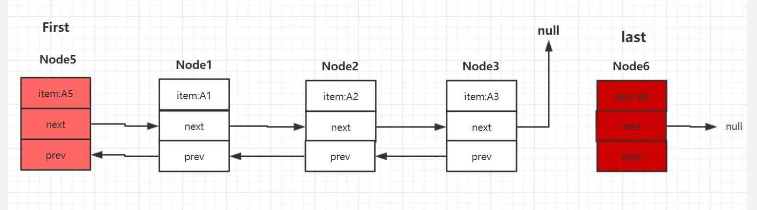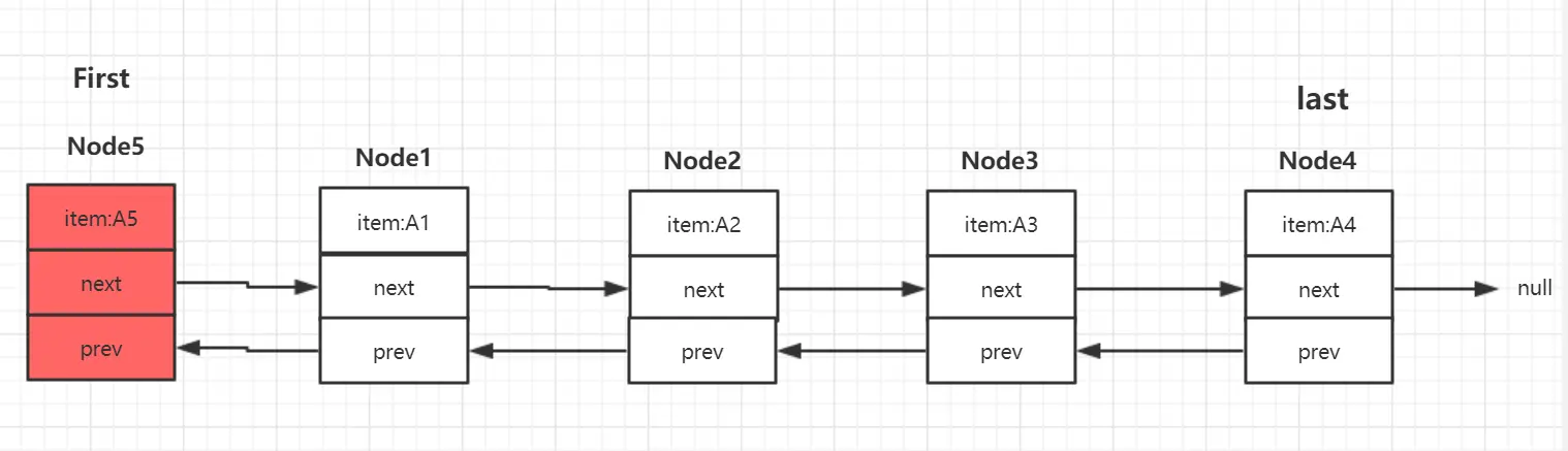 addFirst是将元素插入到LinkedList的头部。 如果现在的机构是下图的: