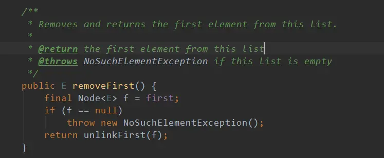 - 首先执行final Node f = first;将头节点赋值给 f