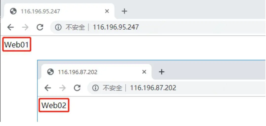 浏览器中分别输入以上两个云主机的公网IP可验证测试站点是否创建成功