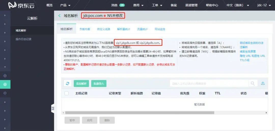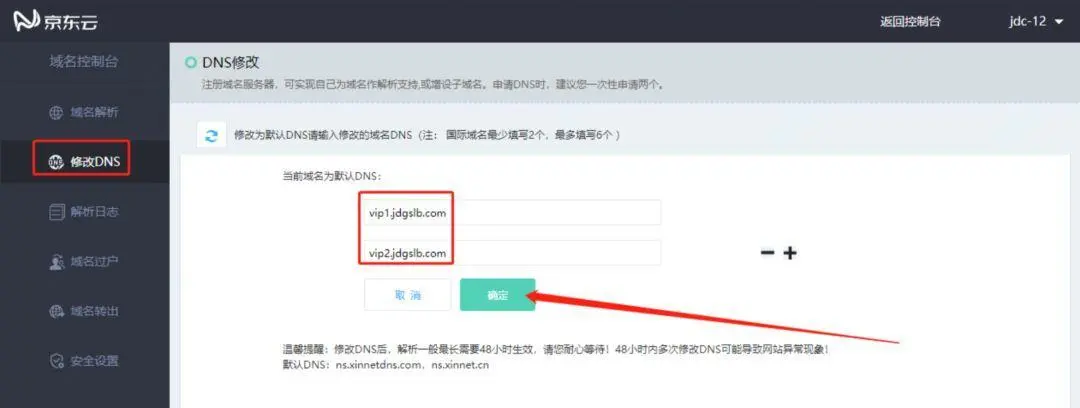 NS修改是否生效,由于控制台是定时查询同步,所以会有所延迟,具体可查询whois:net.jdcloud.com/domainInfo/…