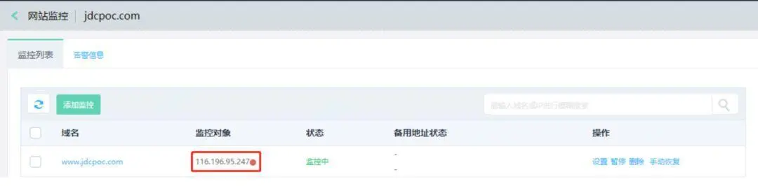 注意:网站监控报警只有
