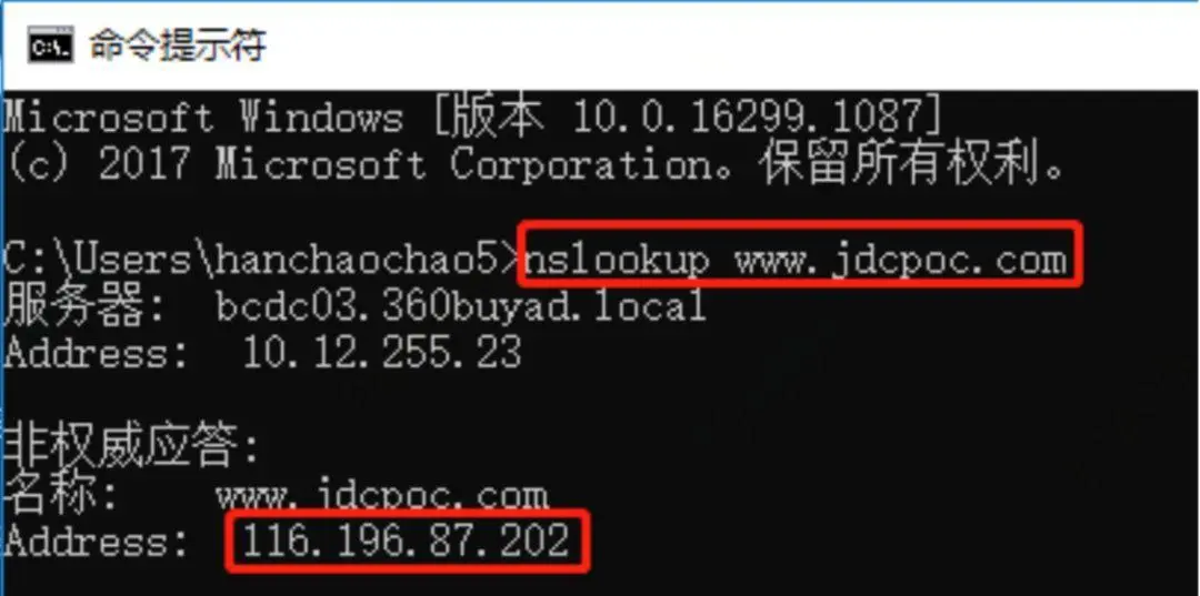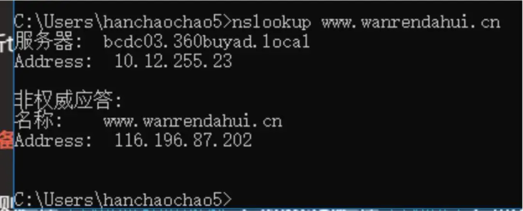 我们用nslookup命令发现域名也已经解析到了备用地址