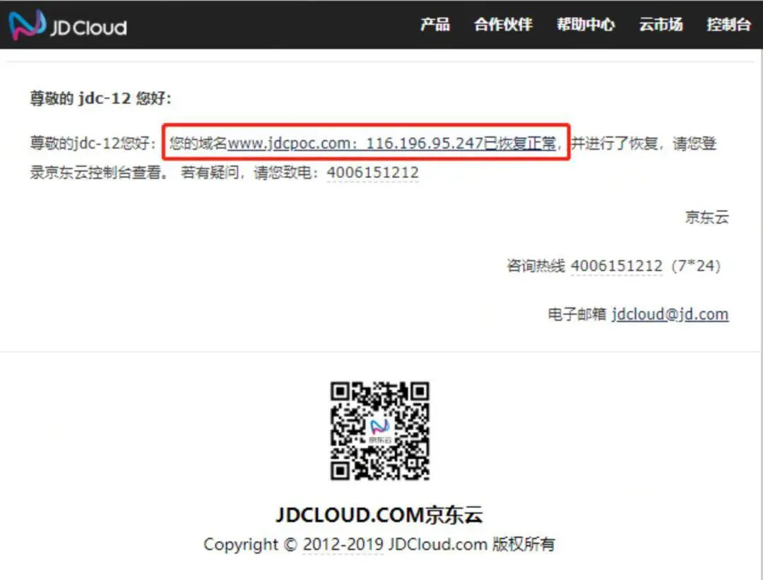 同时我们也收到了恢复邮件