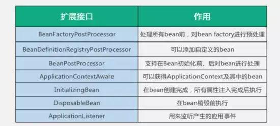 它扩展自BeanFactoryPostProcessor,在执行BeanFactoryPostProcessor的功能前,提供了可以添加bean definition的能力,允许在初始化一般bean前,注册额外的bean。例如可以在这里根据bean的scope创建一个新的代理bean。