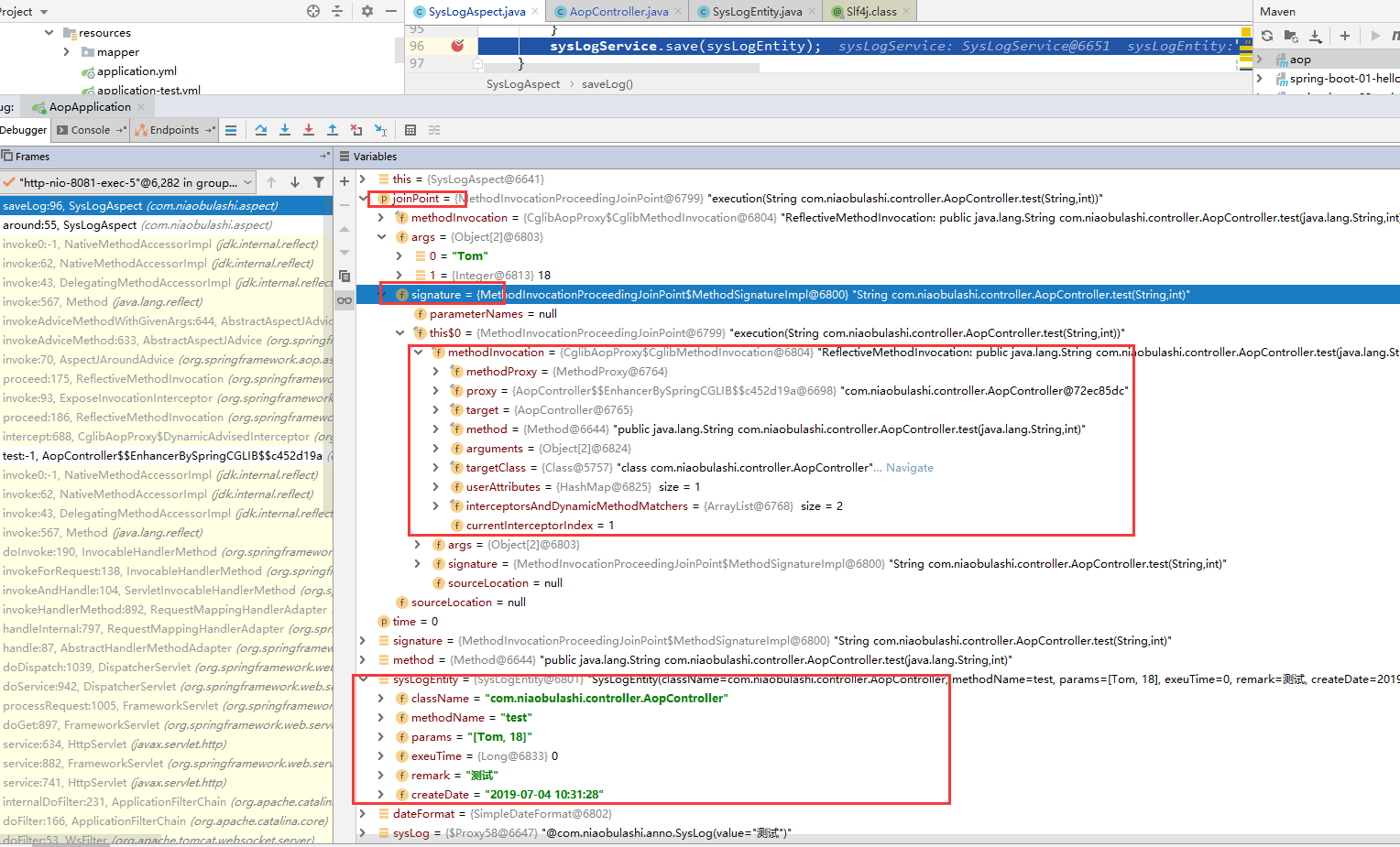 以及sysLogEntity赋值的各个参数。