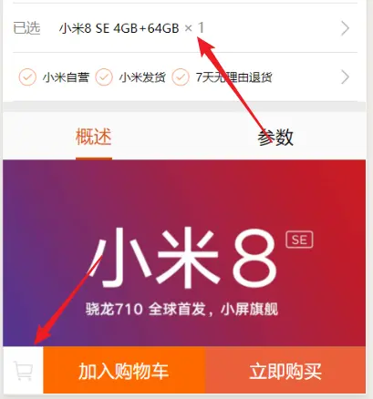 在购物页面中选的商品数量和具体的商品信息,之后跳转回商品详情页面中,对应的数据会修改