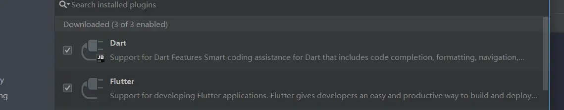 安装解压完flutter后,按照flutter的官方教程,首先需要在你的IDE或者编译器(vscode)里安装插件,分别是 flutter 和dart的插件(我使用的是AS,所以下文以AS为例)