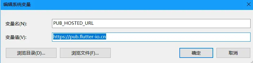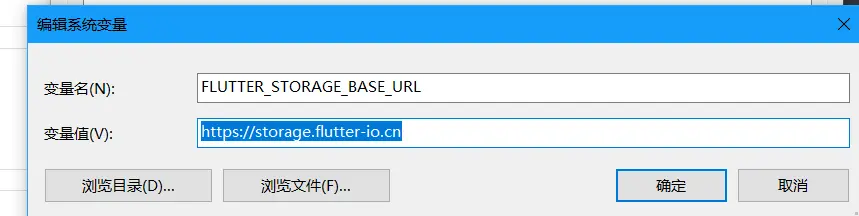 由于在国内访问Flutter有时可能会受到限制,Flutter官方为中国开发者搭建了临时镜像,大家可以将如下环境变量加入到用户环境变量中