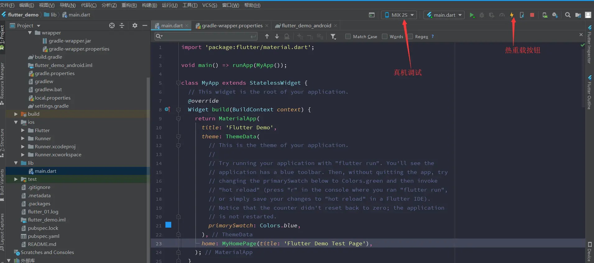 至此问题全部解决,我们可以尝试运行一下官方的flutter demo了
