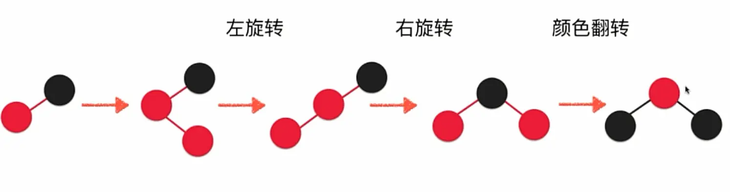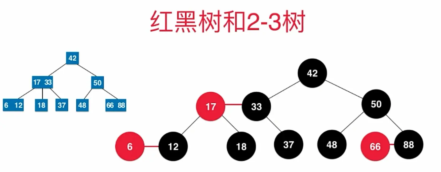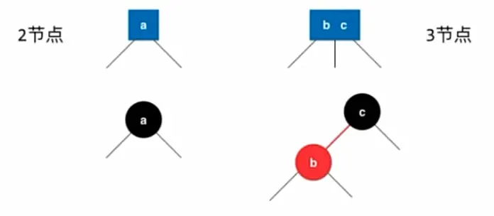 红黑树与2-3树不同的一点在于红黑树的每个节点只能存一个元素,但是我们可以通过组合的方式表示出2-3树中的3节点。