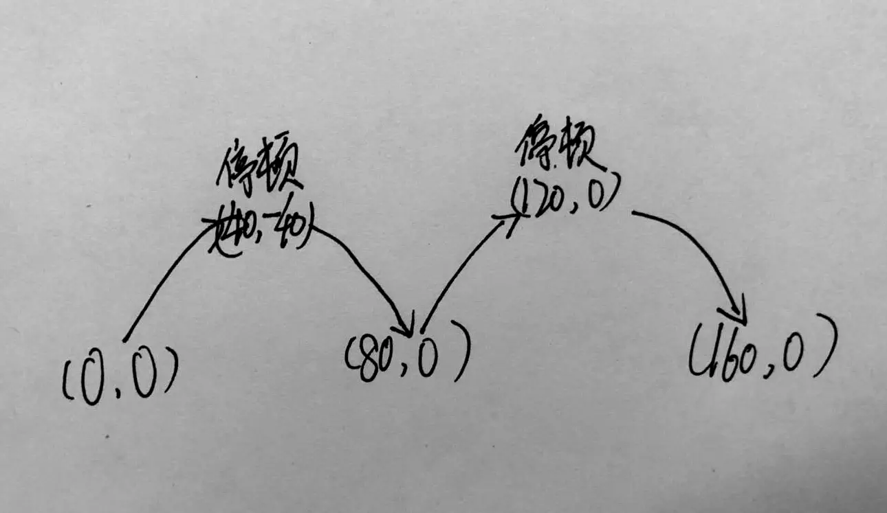 可以采用半步半步的跳法,运动轨迹如下可见。可以做到跳跃的效果。(注意:图中第四个坐标写错了,应该是(120,-40))