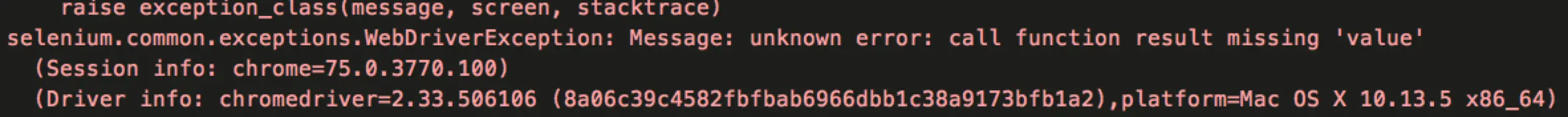 解决方案:下载和chrome浏览器版本匹配的chromedriver