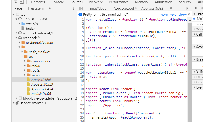 这个图就不列举,和上一个的区别就是.map中存放的是源码,不是转换过的代码