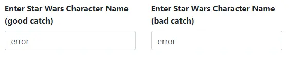 此外,由于你没有 在 catchError 中调用 SetName, 因此不会在 UI 上设置 name. 因此,如果点击第一个按钮,将看不到任何输出,或者将看到上一次设置的 name. 另一个很难调试的“怪异问题”.