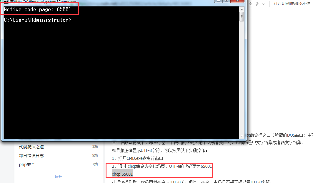 - 修改为utf-8。同样在cmd中执行命令chcp 65001,并回车: