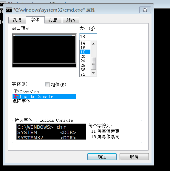 chcp 65001后还不能直接在odpscmd中正常查看中文,还需要在cmd的属性窗口的“字体”栏中,选择"点阵字体"之外的字体,如"Lucida Console"或者"新宋体"等字体。