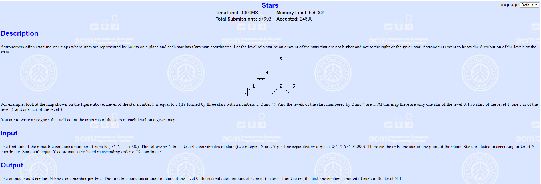 level[find(1, 0, maxn, 0, stars[i][0]) - 1] ++; //这边 -1 是不能把自身给算上去