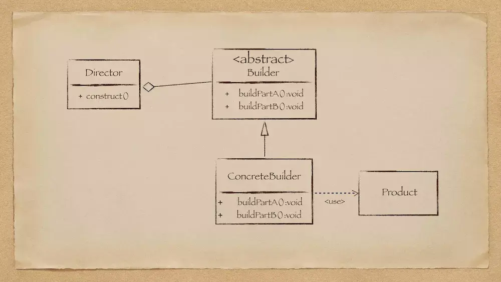 上面介绍的Builder模式当然不是“原生态”的啦,经典的Builder模式的类图如下: