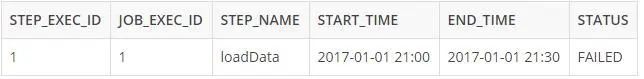 executionContext.putLong(getKey(LINES_READ_COUNT), reader.getPosition()) 比如在任务中有一个名为“loadData”的Step,他的作用是从文件中读取数据写入到数据库,当第一次执行失败后,数据库中有如下数据: