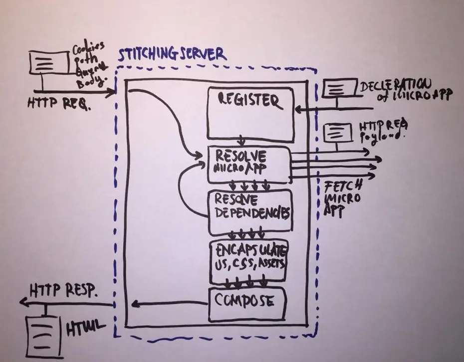 服务器端呈现是一个棘手的问题。 如果你正在考虑iframes缝合微应用然后忘记服务器端渲染。 同样,拼接任务的Web组件也不比iframe强大。 但是,如果每个微应用能够在服务器端呈现其内容,那么拼接层将仅负责连接服务器端的HTML片段。