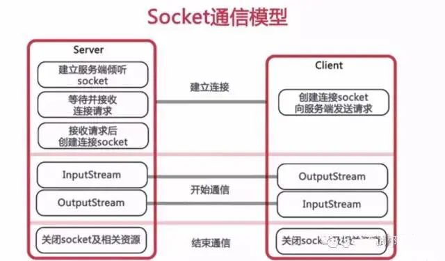 客户端与服务器通过打开Socket对象的InputStream和OutputStream数据流,实现数据的传输工作(Java将I/O相关的操作都提供了流操作接口,网络接口操作方式也一样)。