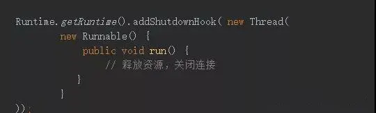3.TCP Server应该实现JVM的关闭钩子(Runtime.addShutdownHook()),主动关闭所有TCP连接,清理占用资源,JVM关闭钩子的使用方式如下所: