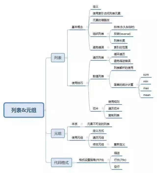 8张思维导图,助你掌握 Python 基础 编程魔方 2019-07-05 232 阅读1分钟 思维导图是整理知识的一种非常有效的手段,这里分享几张 Python 基础学习的思维导图,可以帮助自己巩固下基础,有需要的小伙伴可以加紧时间收藏哦!