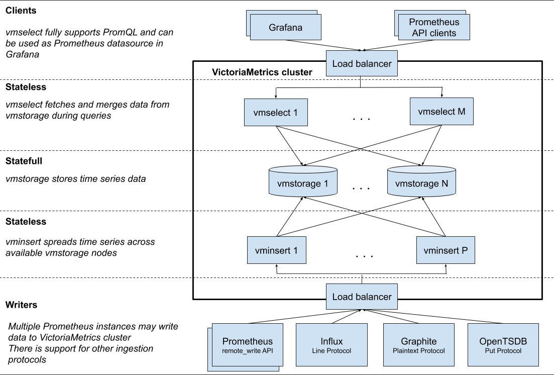 Cluster version of VictoriaMetrics : VictoriaMetrics 是 Prometheus 支持的远程存储,而集群版 VictoriaMetrics 用来实现大规模 Prometheus 集群的高可用,并提供了全局视图和可靠的历史数据存储,与 Thanos 的功能类似,但比 Thanos 的架构更简单,值得一试!