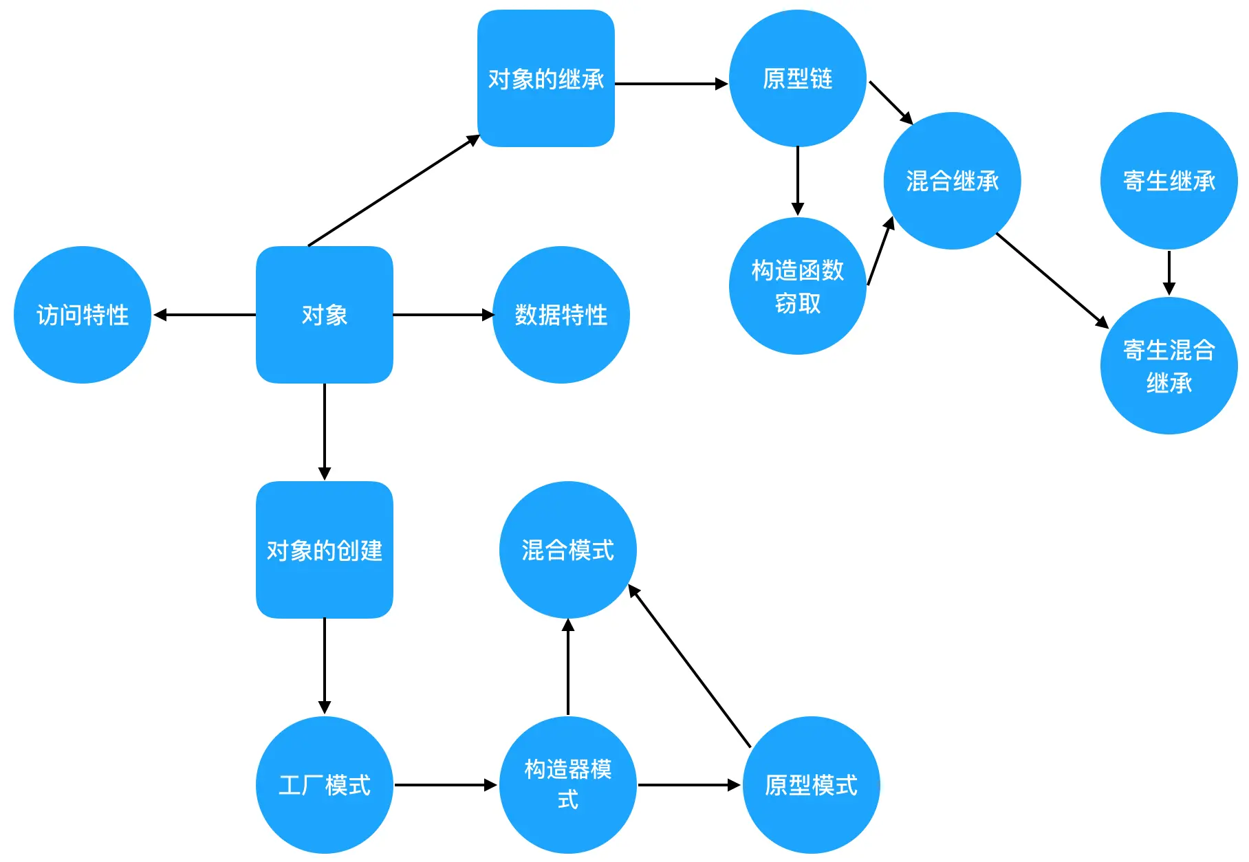 关于 JavaScript 中的对象的知识就介绍到这里,把这两次的内容放到一起,我们可以得到下面这个知识地图: