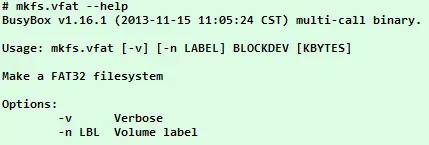 而且我发觉设备的空间有限,原先的busybox才800多k,即使新移植成功也要2M多。于是换个思路,单独源码移植mkfs.vfat