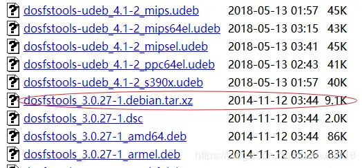 命令:tar -xvf dosfstools_3.0.27.orig.tar.xz