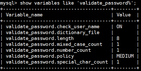 在设置密码的时候有个很讨厌的点,就是mysql默认的密码策略是中级,查看密码策略的命令: