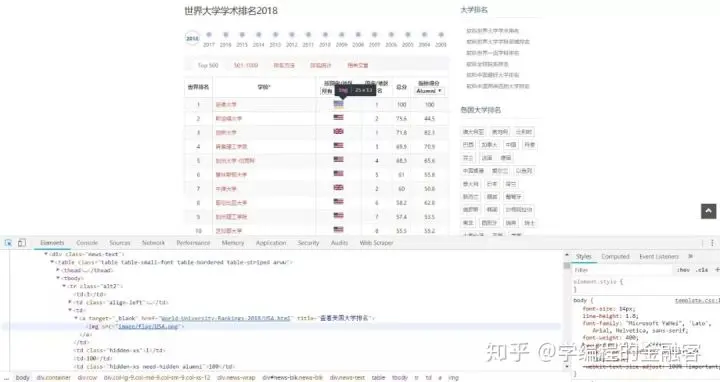 此时的表格数据并不完整,因为没有将国家抓取下来。国家在网页里使用图片表示的,因为我们可以定位到国家代码位置。