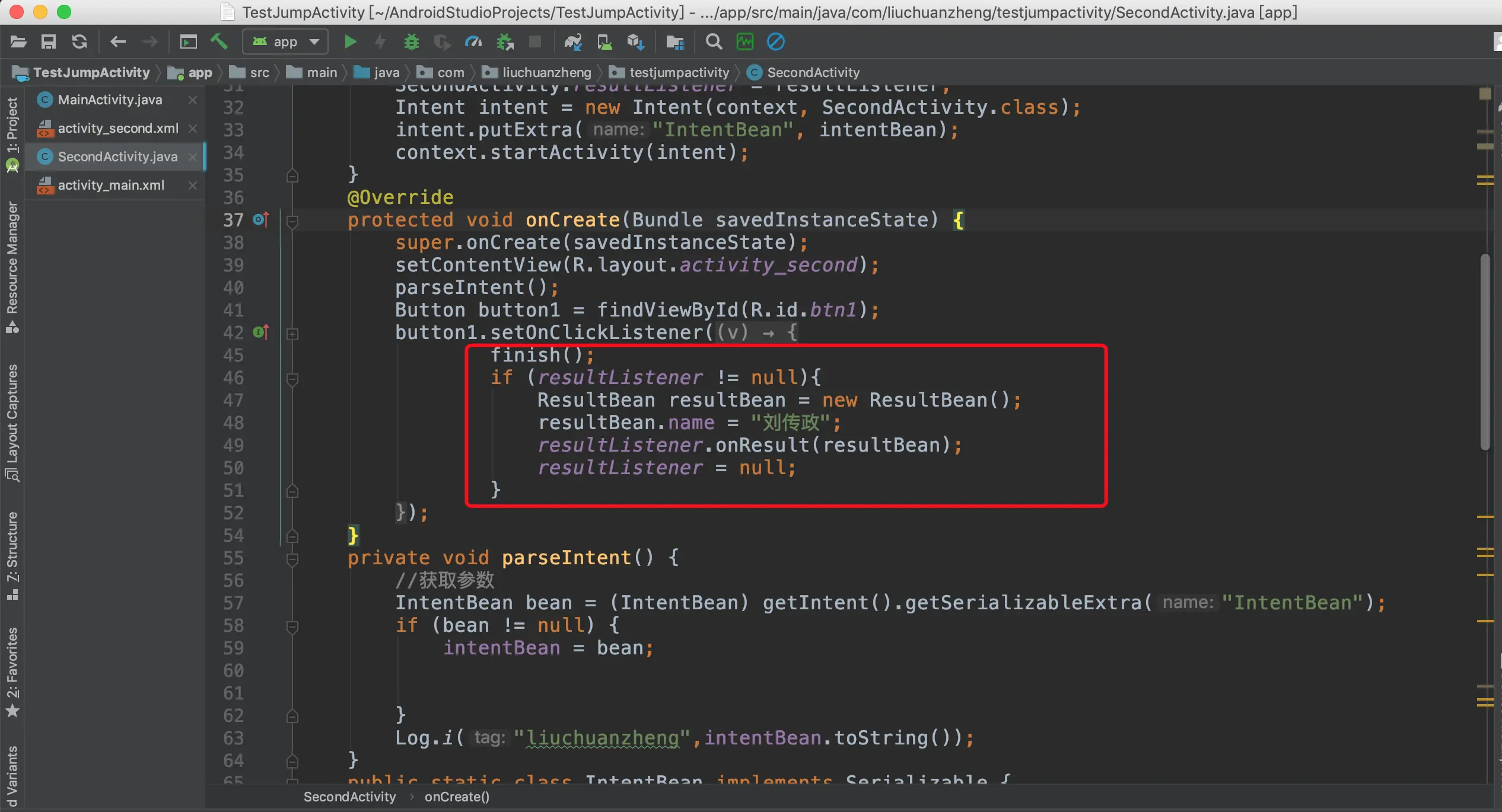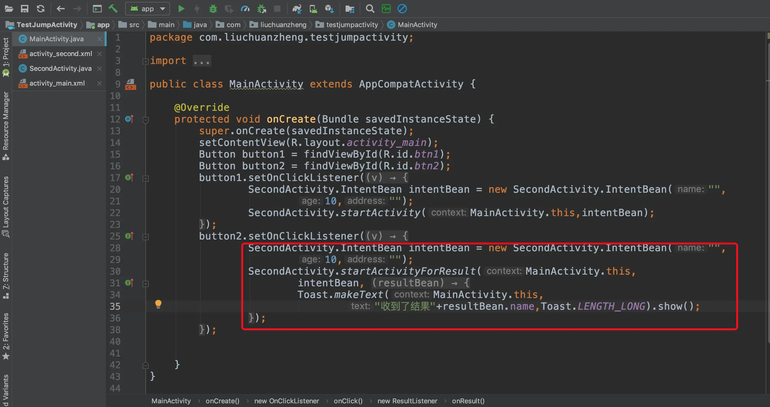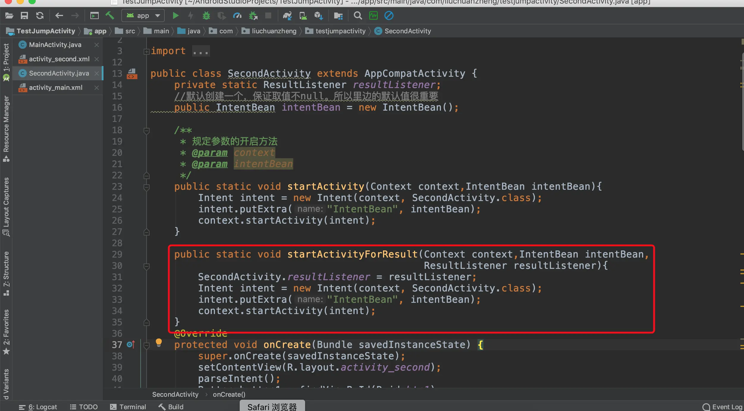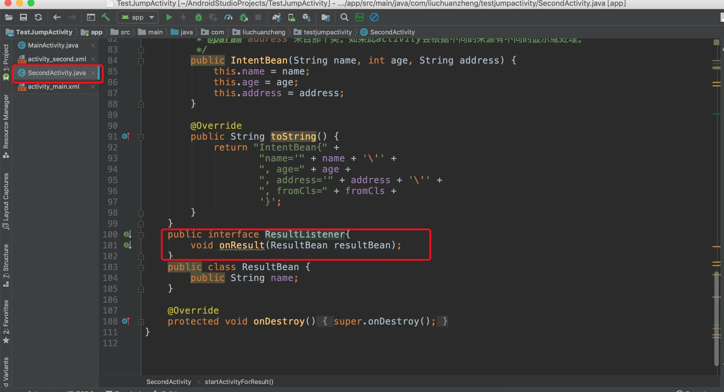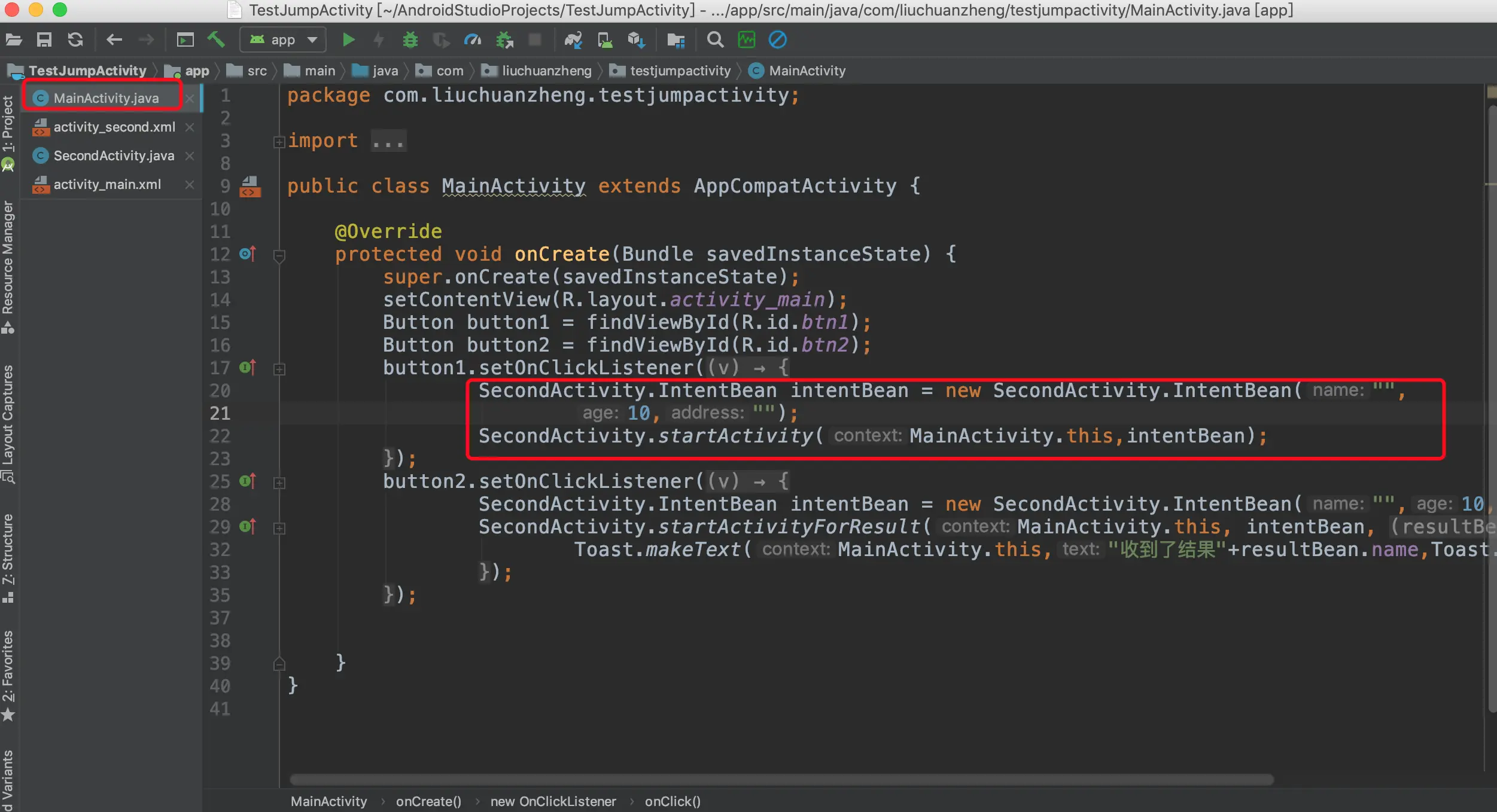 SecondActivity.startActivity(MainActivity.this,intentBean);
