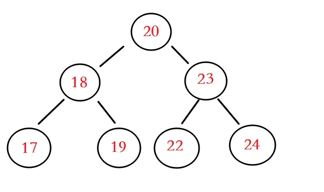 我们将第一个数字20 作为根节点存放,第二个数字18比20小所以放在左边 23大放在右边