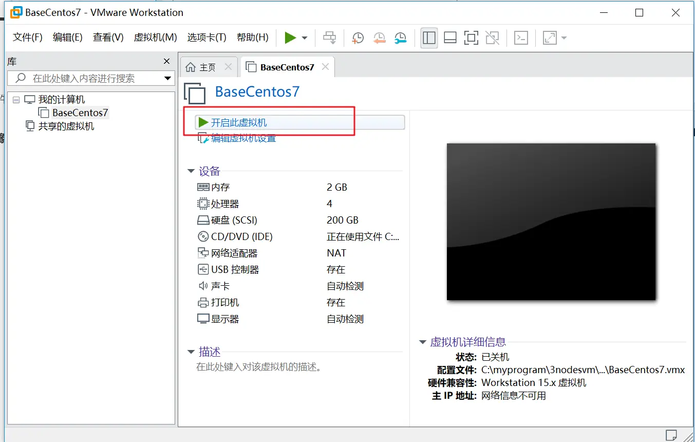 1、运行VM--->创建新的虚拟机--->典型--->稍后安装操作系统--->选择linux,下面版本选择CentOS 7 64位--->输入名称BaseCentos7,选择安装位置--->磁盘大小200G(一次性修改的大一些,集群运行的过程中会产生大量文件,默认20G不够用),选择将磁盘拆分成多个文件--->完成--->创建虚拟机完成