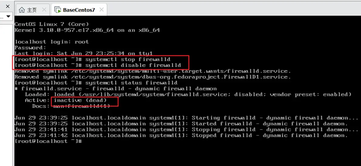[root@localhost ~]#systemctl stop firewalld