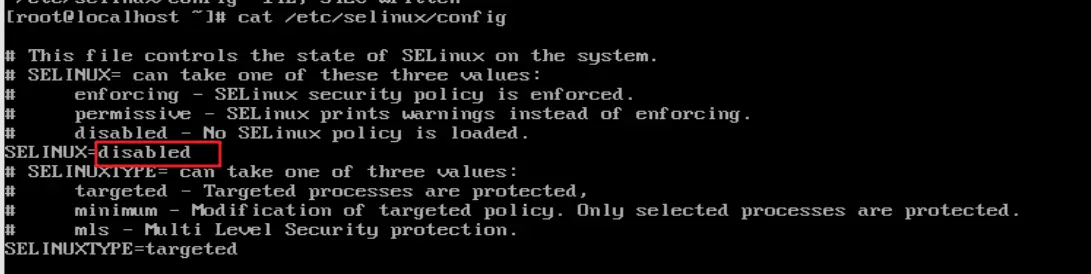 [root@localhost ~]# cat /etc/selinux/config
