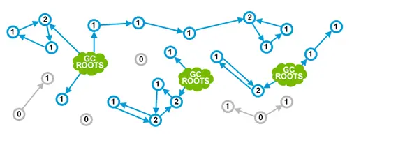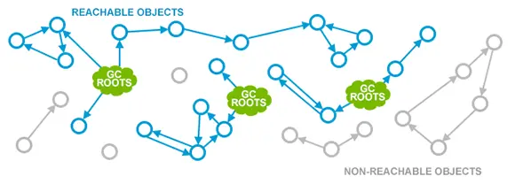 首先,JVM对对象的可达性的构成更加具体。与我们在前几章中看到的模糊定义的绿云不同,我们有一组非常具体和明确的对象,称为GC Roots: