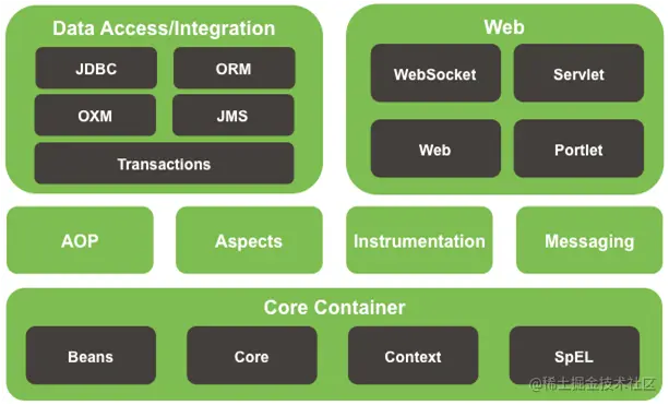 Spring 框架的核心是 Spring IoC 容器。容器创建 Bean 对象,将它们装配在一起,配置它们并管理它们的完整生命周期。