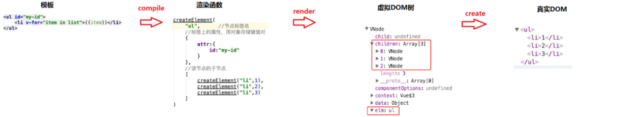 - Vue.js通过编译将template模板转换成渲染函数(render),执行渲染函数就可以得到一个虚拟节点树。