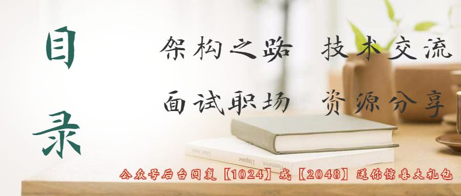 公众号后台回复「目录」 可以查看公众号文章目录大全,回复「加群」 可以加入读者技术交流群,与大家一起交流。