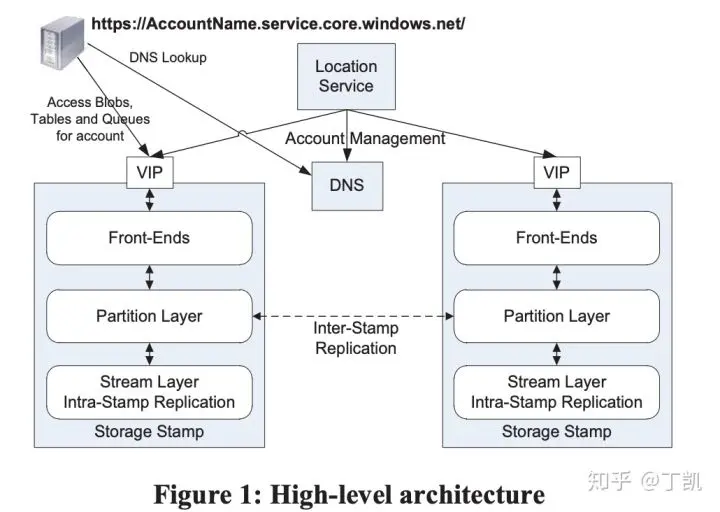 - Storage Stamp:我们可以称之为存储单元,一般是位于同一个数据中心内的一堆存储节点构成的存储集群